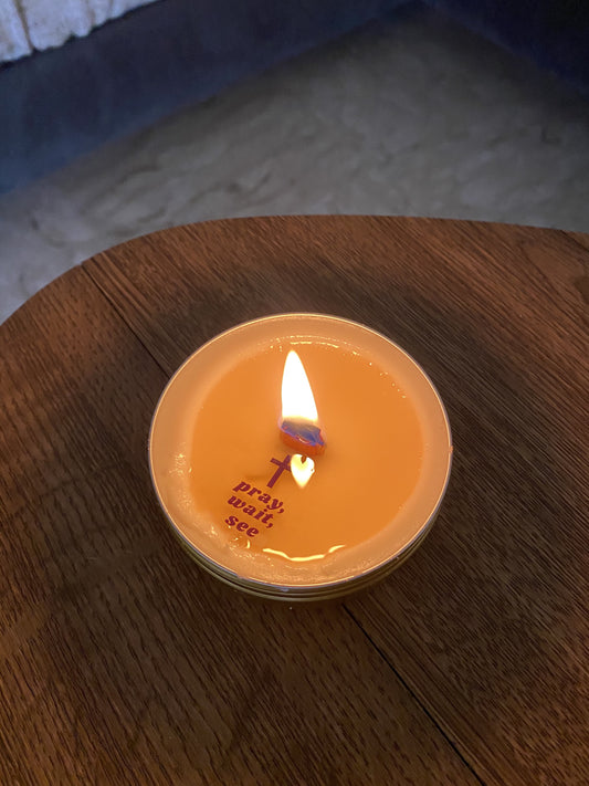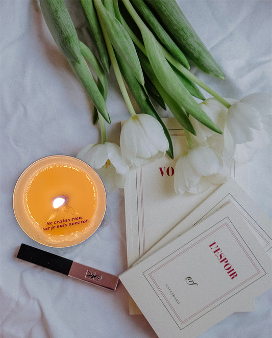 Bougie verset "Sois bénie" avec message caché qui apparaît dans la cire