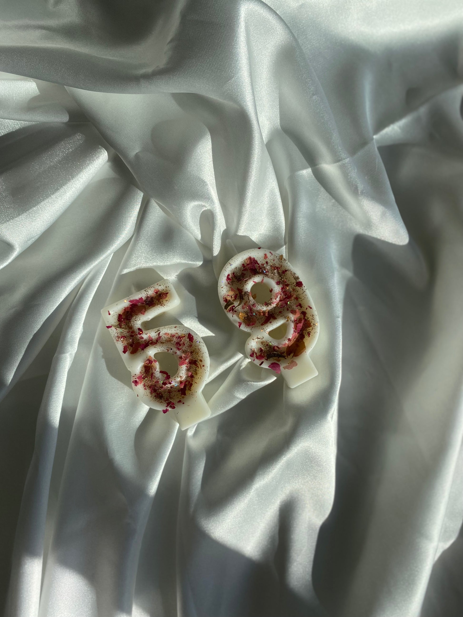 Illuminez vos moments les plus précieux avec les bougies chiffres en cire de soja naturelle, délicatement parsemées de pétales de rose séchés et d’une touche de paillettes scintillantes qui captent la lumière comme un éclat de joie.