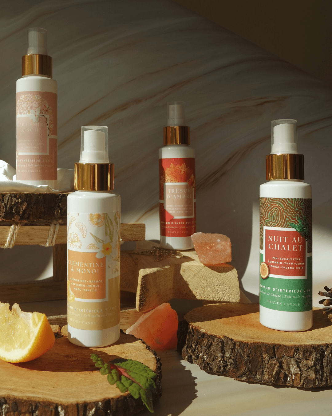 Quand le froid s’installe et que la lumière se fait douce, les sprays d’ambiance Heaven Candle viennent réchauffer l’atmosphère d’un souffle parfumé.